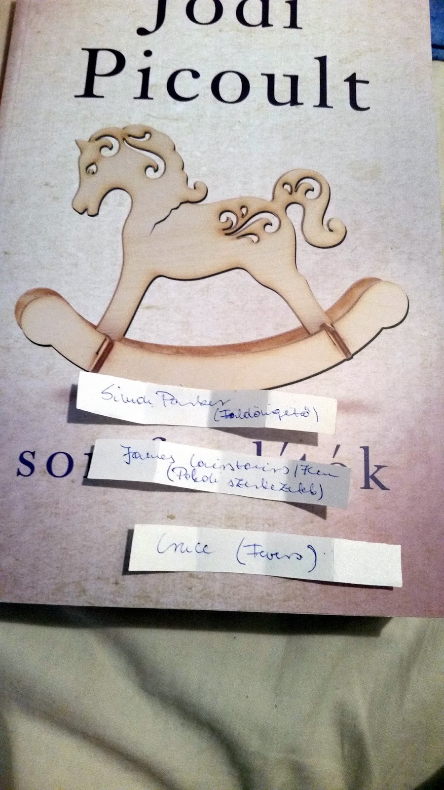 Aki nem ismeri, annak gyorsan elmondom a szabályokat. Egy cetlire felírod az ellenkező nemű könyves karakterek neveit, összehajtogatod őket, és egy pohárból, vagy bögréből kihúzod őket. Egy körben 3 nevet kell kihúznod, és róluk kell eldöntened, hogy Esküvő lesz-e, vagy inkább csak Megcsókolnád az illetőt, illetve nem akarsz tőle semmit, és szimplán csak Lelököd egy szikláról.